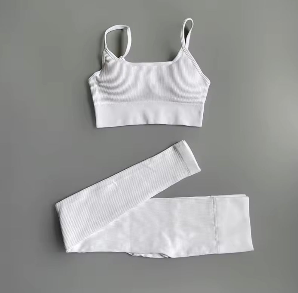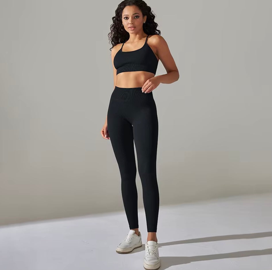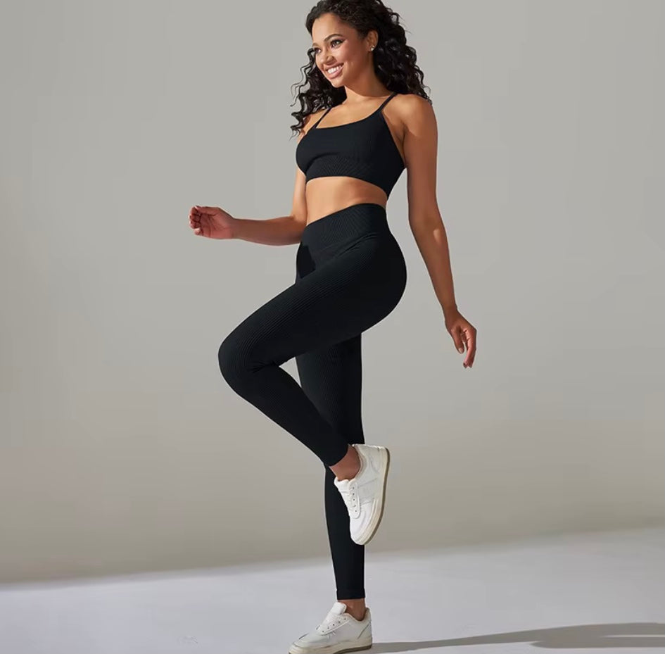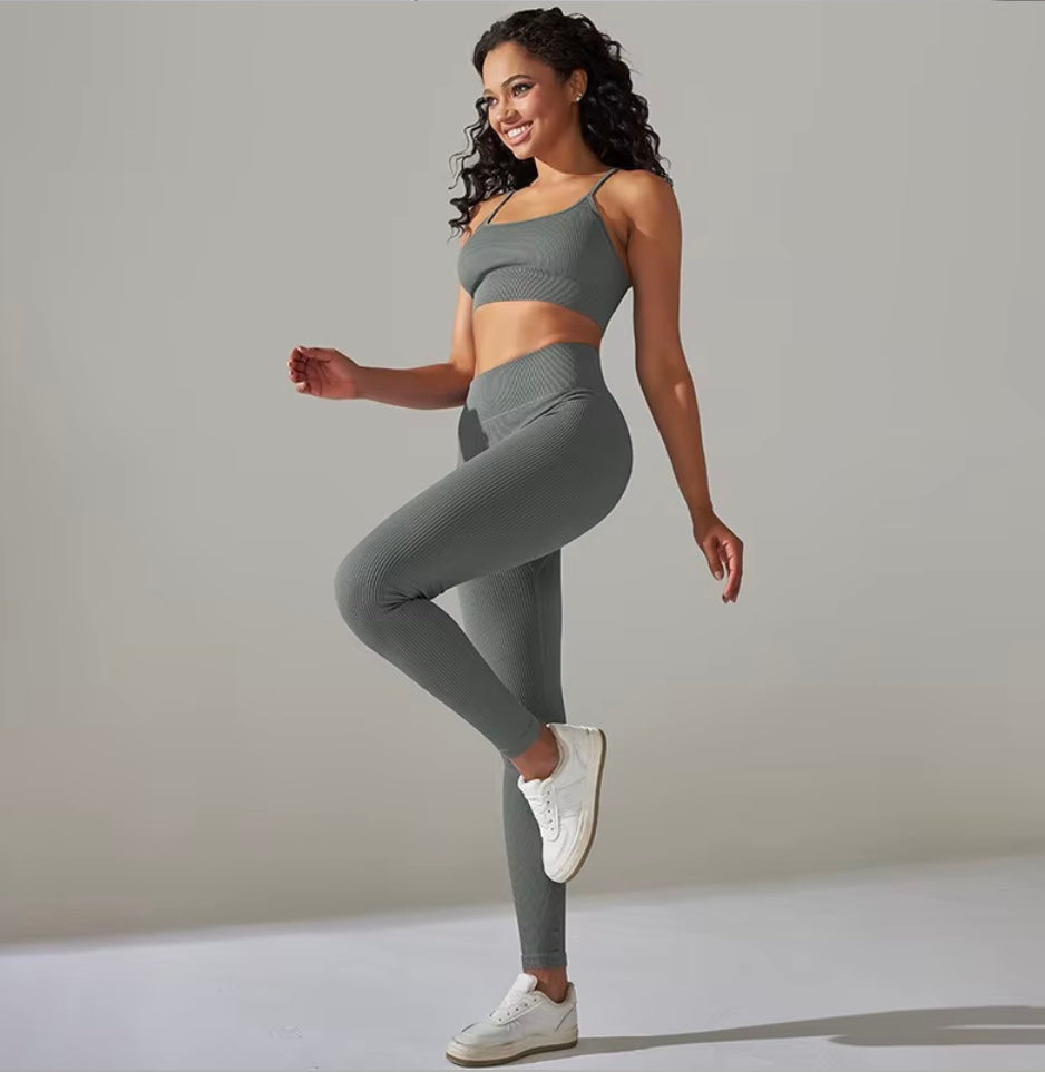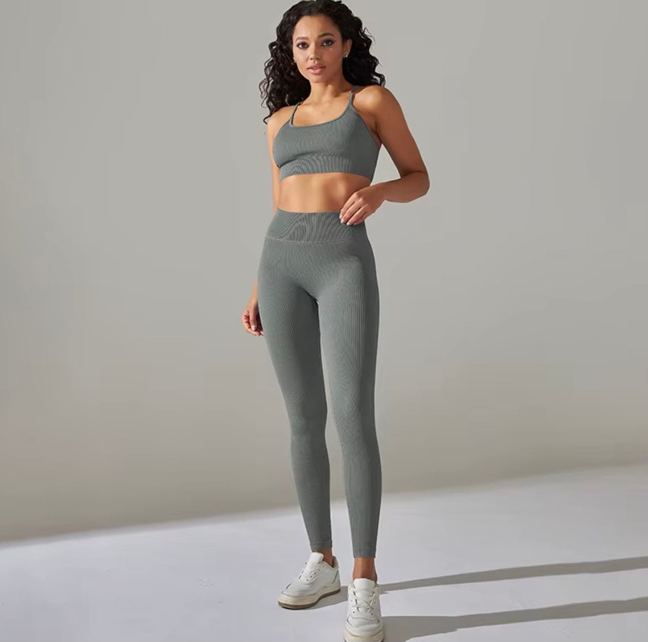Découvrez cet ensemble côtelé de yoga pour femmes, conçu pour allier confort et style durant vos séances d'entraînement. Le soutien-gorge push-up offre un maintien optimal et une silhouette valorisée, tandis que les leggings assurent une liberté de mouvement totale grâce à leur tissu extensible. Parfait pour le yoga, la gymnastique ou le sport quotidien, ce survêtement 2 pièces vous accompagne avec élégance et performance à chaque étape de votre activité physique. Adoptez une tenue qui soutient vos objectifs et sublime votre bien-être.