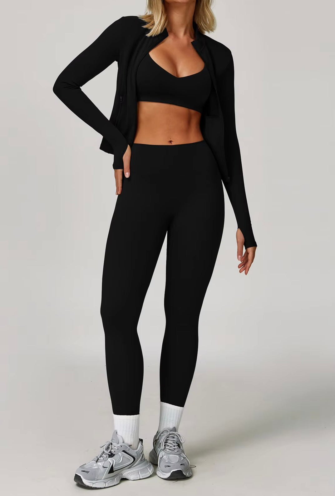 Découvrez cet ensemble de gymnastique 3 pièces pour femmes, alliant élégance et performance. Composé d’une veste de soutien-gorge de yoga, de leggings taille haute froissés et d’un short assorti, il offre un maintien optimal et une grande liberté de mouvement. Conçu pour sublimer chaque silhouette, ce vêtement de sport sophistiqué vous accompagne avec confort lors de vos séances de fitness ou de yoga. Un choix parfait pour allier style et fonctionnalité au quotidien.