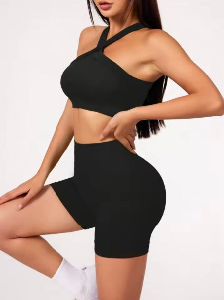 Ensemble de Yoga 2 pièces, sensation nue, vêtements d'entraînement pour femmes, Shorts de Yoga taille haute et soutien-gorge de sport à bretelles, ensembles courts d'été